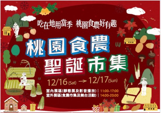 | 主旨: | 有關本府訂於112年12月16日至17日辦理「桃園食農 聖誕市集」活動一案,請貴校轉知親師生相關訊息,鼓勵教師、學生及家長踴躍參加,請查照。 |